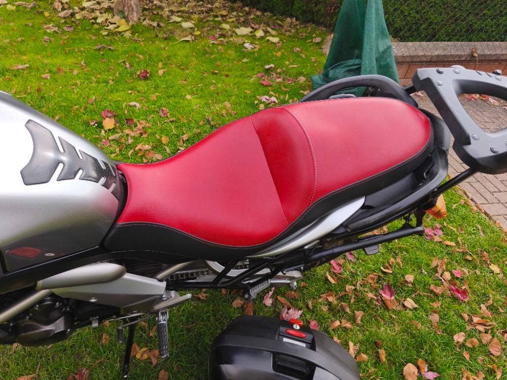 Komplet tři kufry, kožené sedlo na zakázku, včetně opěradla TOP case